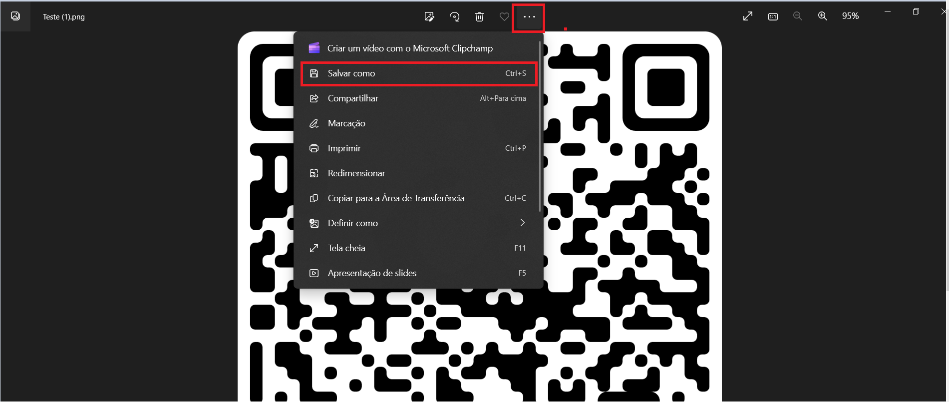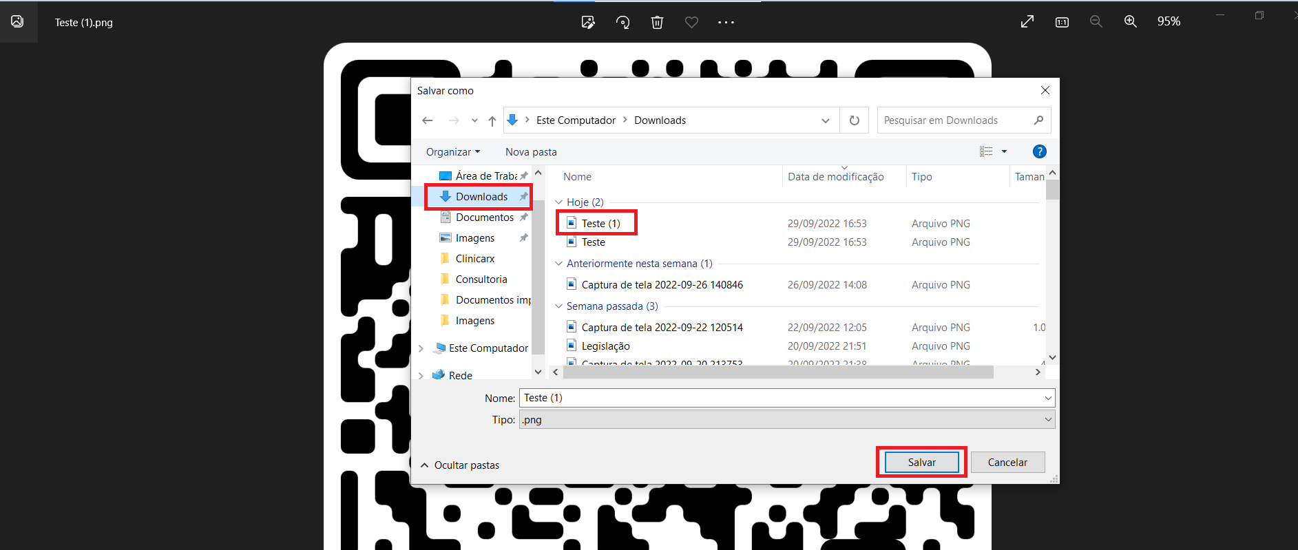 9. Salve seu QR code no computador, para não perder e não precisar gerar outro:
