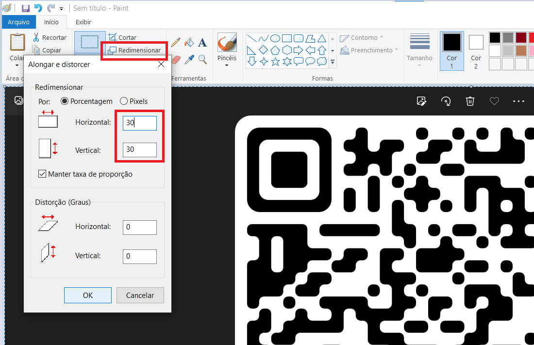 14. No Paint, clique em "Redimensionar":