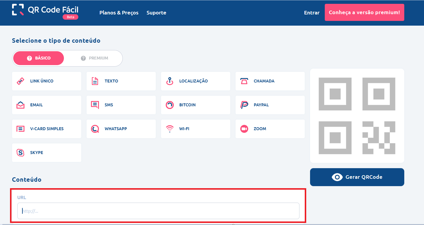 2. Escolha um site gerador de QR code. Exempos de sites: