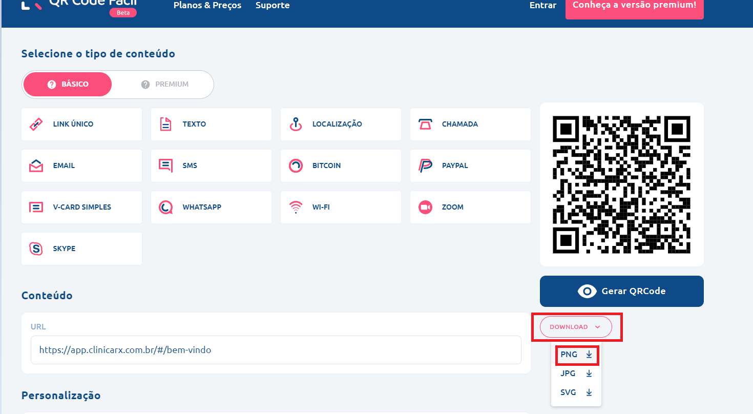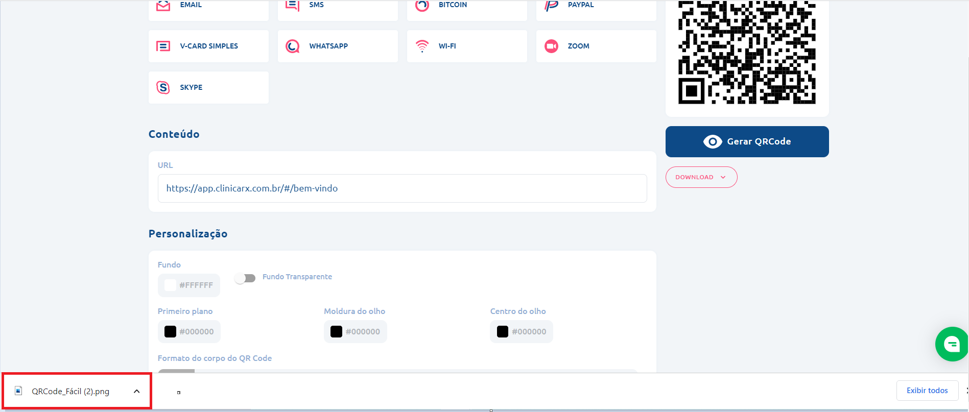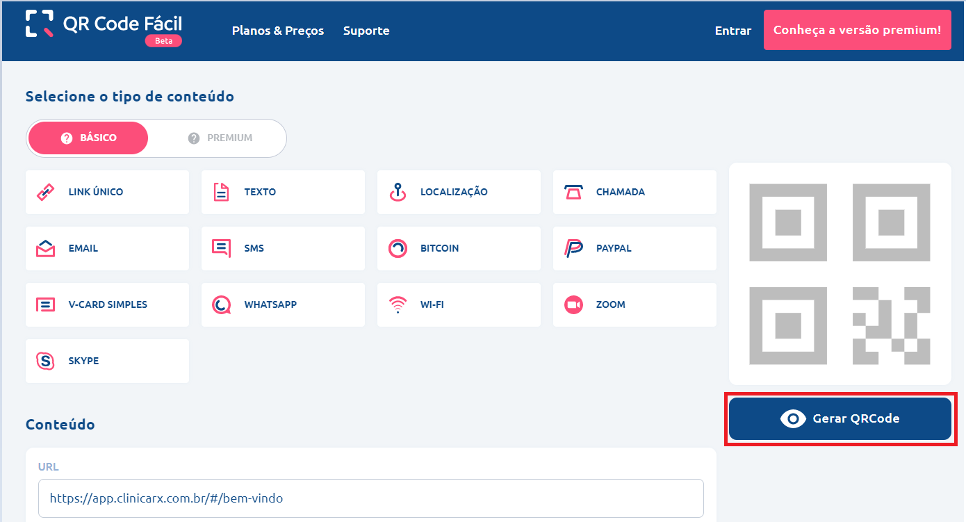 4. Depois clique em "Gerar QRCode":