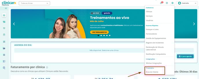 Como acessar a Área do Cliente (Área financeira) pela Plataforma da Clinicarx?