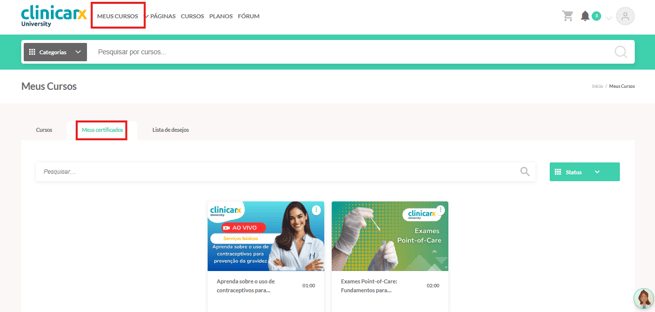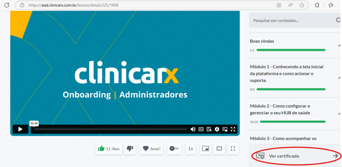 Passo a passo: Como acessar a plataforma Clinicarx e obter certificados: