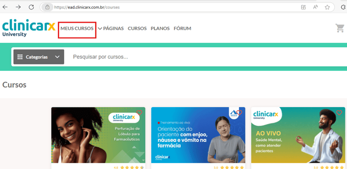 Em ambos os casos, você será redirecionado para a EAD University. Ao acessar por meio da Plataforma Clinicarx, você não precisará realizar o login novamente.