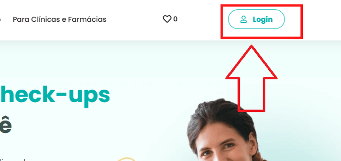 Ou se estiver no site principal (clinicarx.com.br e clinicas.clinicarx.com.br) o acesso pode ser feito por meio do botão superior direito "Login":
