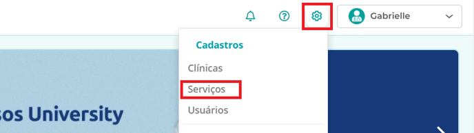 - Seleção: Na página inicial, clique no ícone de engrenagem no menu superior da página e selecione "Clínicas";