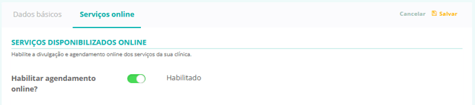 - Ao lado da frase "Habilitar agendamento online", clique no botão para habilitar: