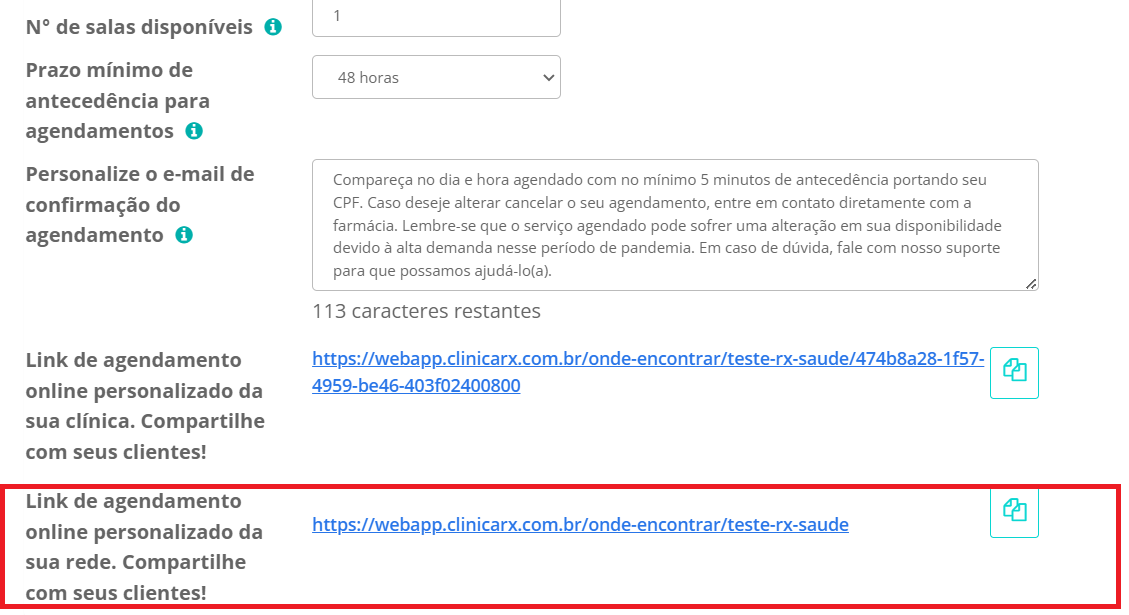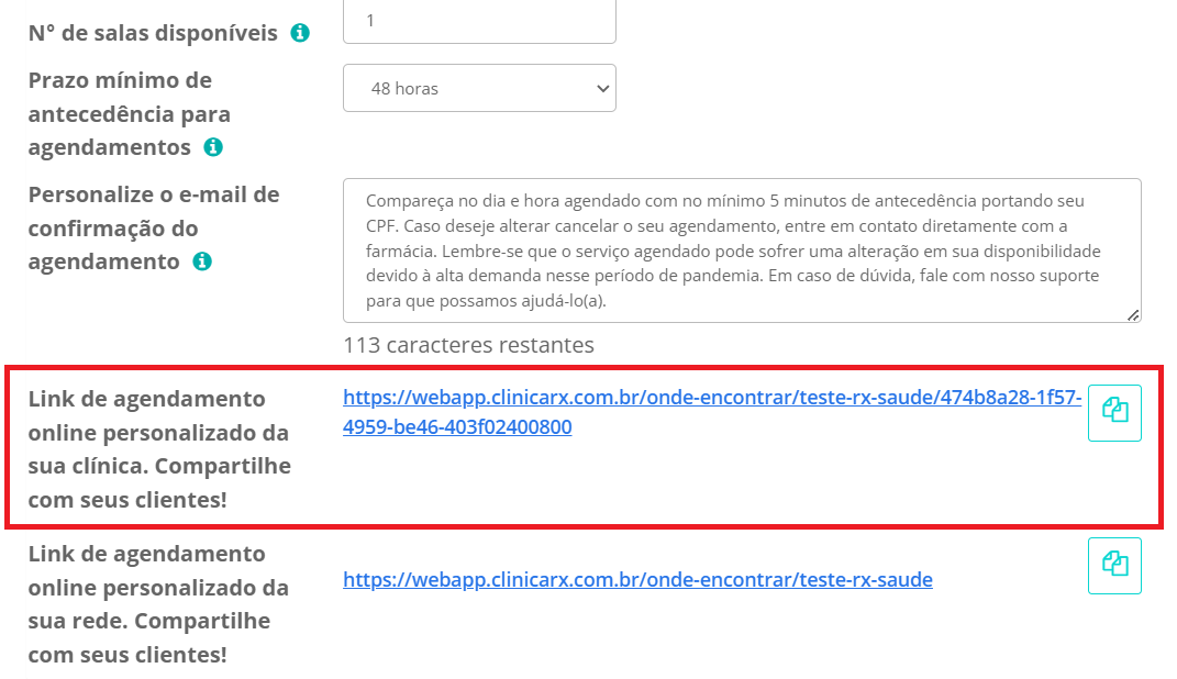 Antes de divulgar o link para seus clientes, confira se todos os dados da agenda estão configurados corretamente.