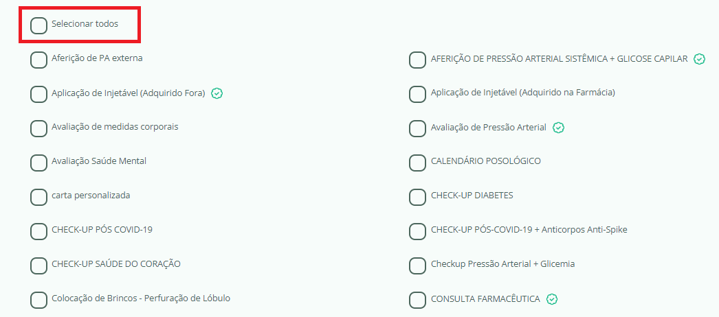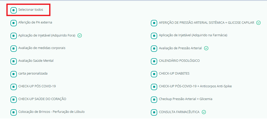 3. Se você clicar novamente, vai limpar todas as seleções e você poderá clicar apenas nos serviços desejados: