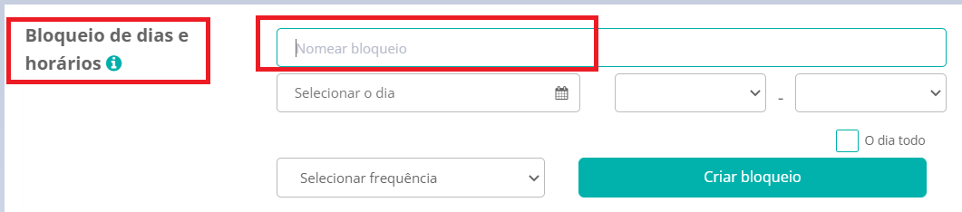 3. Depois você irá configurar os dados de bloqueio da agenda. Crie o nome do bloqueio. Ex: intervalo, horário de almoço, feriado:
