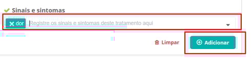 12. Digite todos os sinais e sintomas que tenham a ver com o medicamento que você está prescrevendo e aperte "Enter" no teclado após escrever cada uma das palavras. Uma "tag" será criada com cada palavra. Depois de digitar tudo, clique em "Adicionar":