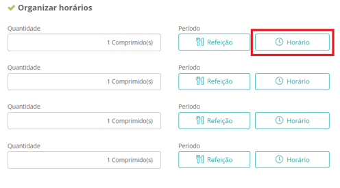 9. Em "Organizar horários" e clicando no "x" ao lado de "Refeição", você poderá selecionar a opção "Horário":