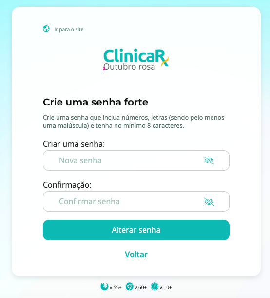 Para garantir a segurança dos dados de saúde exibidos na plataforma, é essencial que qualquer usuário com uma senha considerada fraca crie uma nova durante o próximo login.