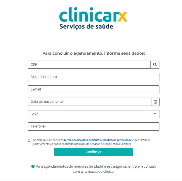 Para concluir seu agendamento, informe seus dados e clique em "Confirmar":
