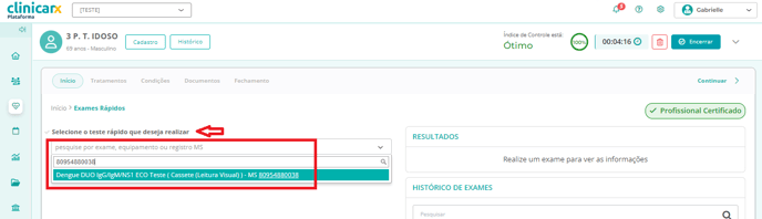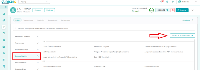 - Selecione "Exames Rápidos" como etapa do serviço a ser realizado;