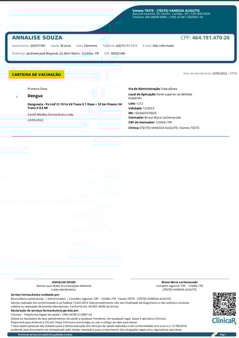Disponibilize ao paciente um documento impresso com todas as vacinas registradas em seu histórico.