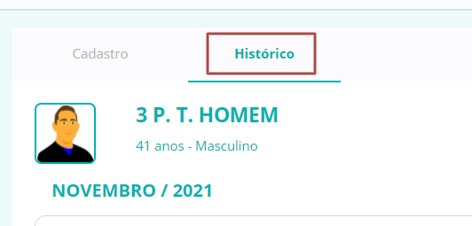 Após clicar, você terá acesso ao “Cadastro” do paciente. Perceba que, ao lado da palavra “Cadastro”, tem a palavra “Histórico”.